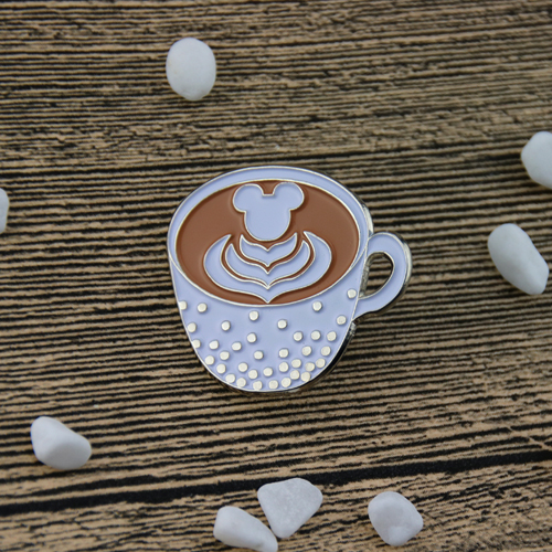 GS-JJ.com has created this special design. A very special coffee cup Lapel Pin, fancy coffee, with a beautiful pattern , the top is a Mickey Mouse picture, the bottom of the six leaves, the cup is very delicate, covered with a lot of circular silver metal, sparkling. As long as you like, you can easily wear every day this lapel pin. The coffee cup lapel pin is crafted by soft enamel, die struck with two tone finish. The craft is very delicate. Each of us is individually poly bagged and fixed by a butterfly clutch back. GS-JJ can provide many different custom enamel pins at the lowest price.